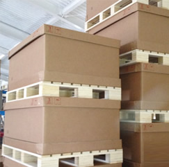 ダンボール箱と木製パレットのハイブリッド梱包